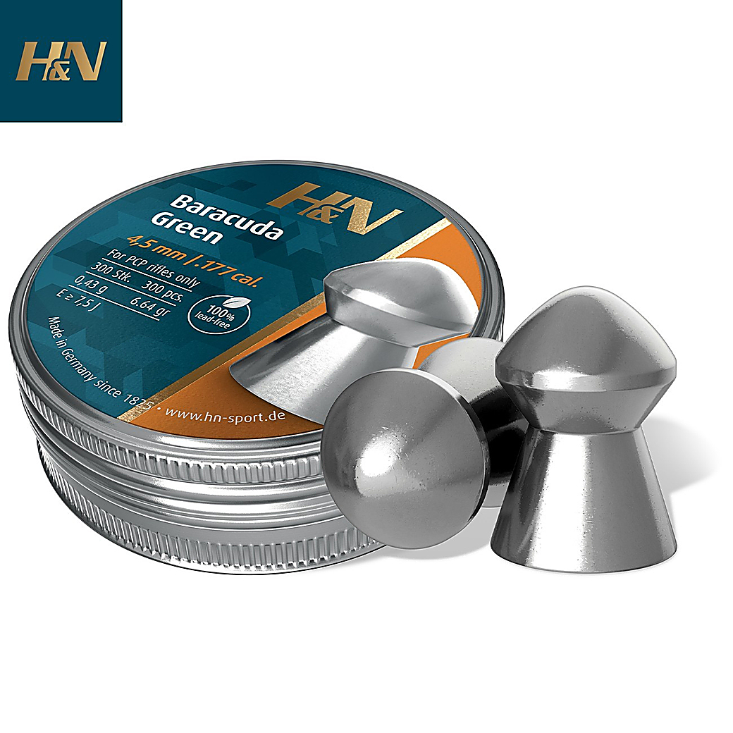 Since this design is very lightweight and the skit is very hard, H&N recommends using this pellet with PCP airguns, as air rifles with spring-piston systems do not generate enough air pressure to effectively deform the hard skirt of the Baracuda Green pellets, which can cause the pellet to become lodged in the barrel, leading to frustration and potential damage.