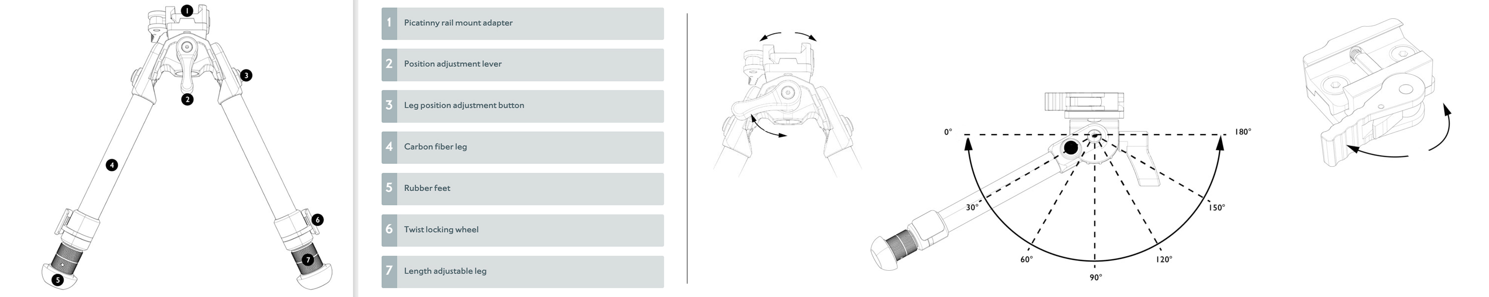 The Carbon Fiber Pro Bipod Package includes: