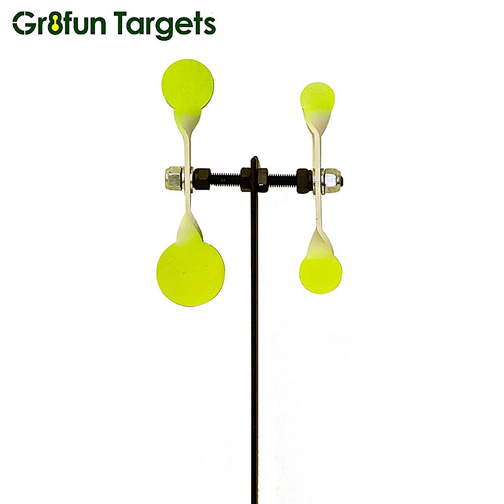 Una diana de acero simple que gira, una diana de rifle de aire ideal para la práctica de HFT. Discos superiores de 30 mm y 20 mm, discos inferiores de 25 mm y 40 mm.