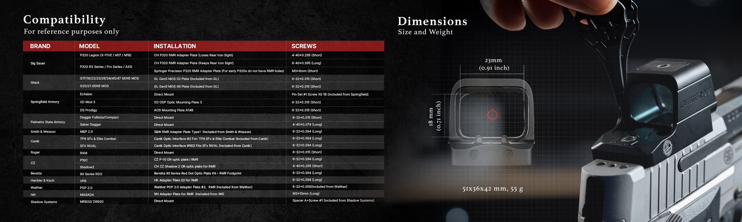 Con montaje RMR, se adapta a una amplia gama de pistolas optics-ready y plataformas tácticas.