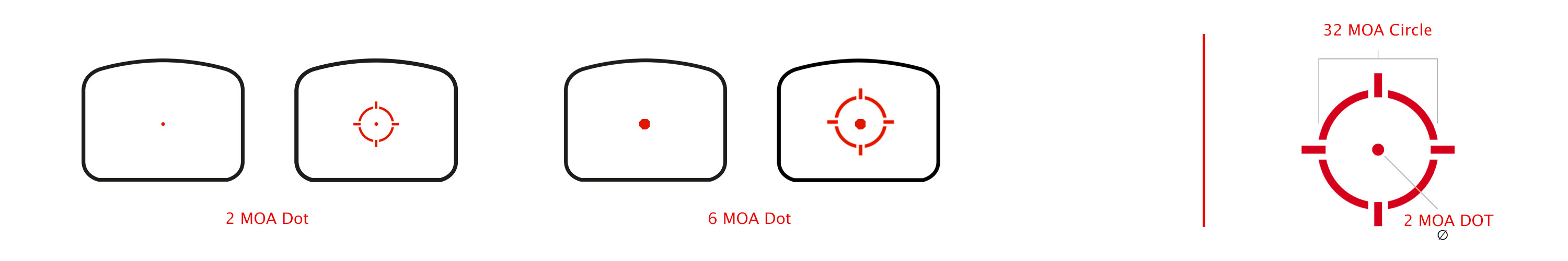 Su avanzado sistema multirretícula ofrece 2 MOA Dot, 6 MOA Dot, 32 MOA Circle y combinaciones Circle-Dot, adaptándose instantáneamente a la velocidad a corta distancia o al tiro de precisión.