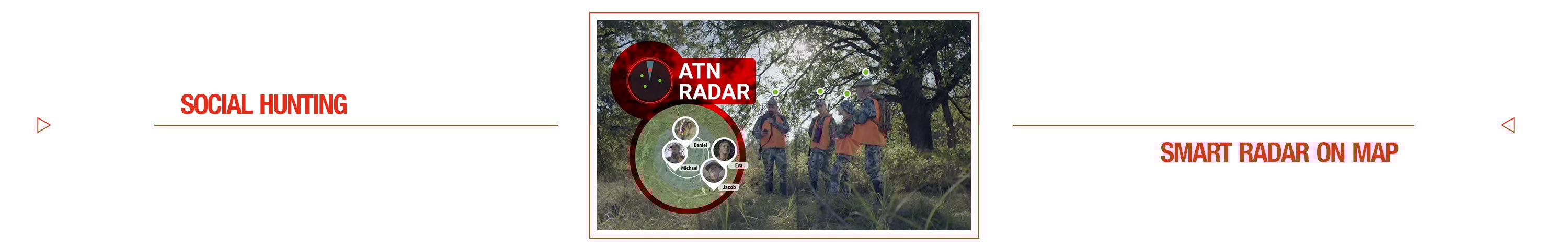 Las personas que utilicen dispositivos ATN Smart verán un miniradar en su campo de visión, que les indicará la dirección y la distancia relativas al objetivo marcado.