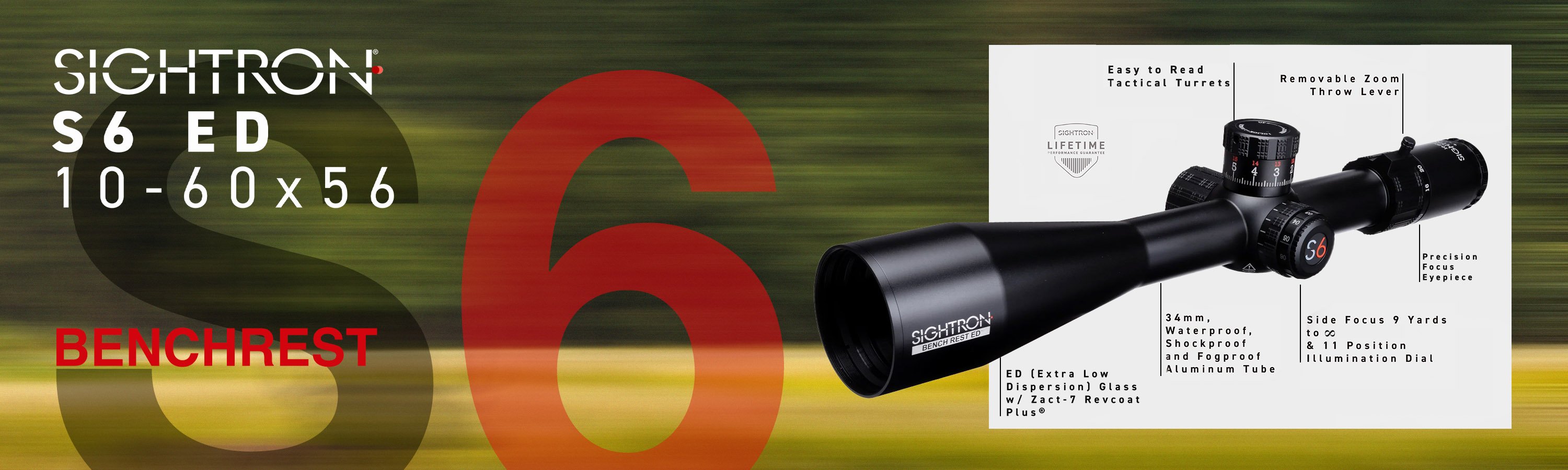 El S6 10-60x56 ED Benchrest establece un nuevo estándar para el tiro de precisión con dos elementos de vidrio de dispersión extra baja (ED), lo que proporciona una mejora del 55 % en la resolución óptica en comparación con los modelos SIII 10-50x60. Esperen una claridad incomparable y una nitidez de extremo a extremo.