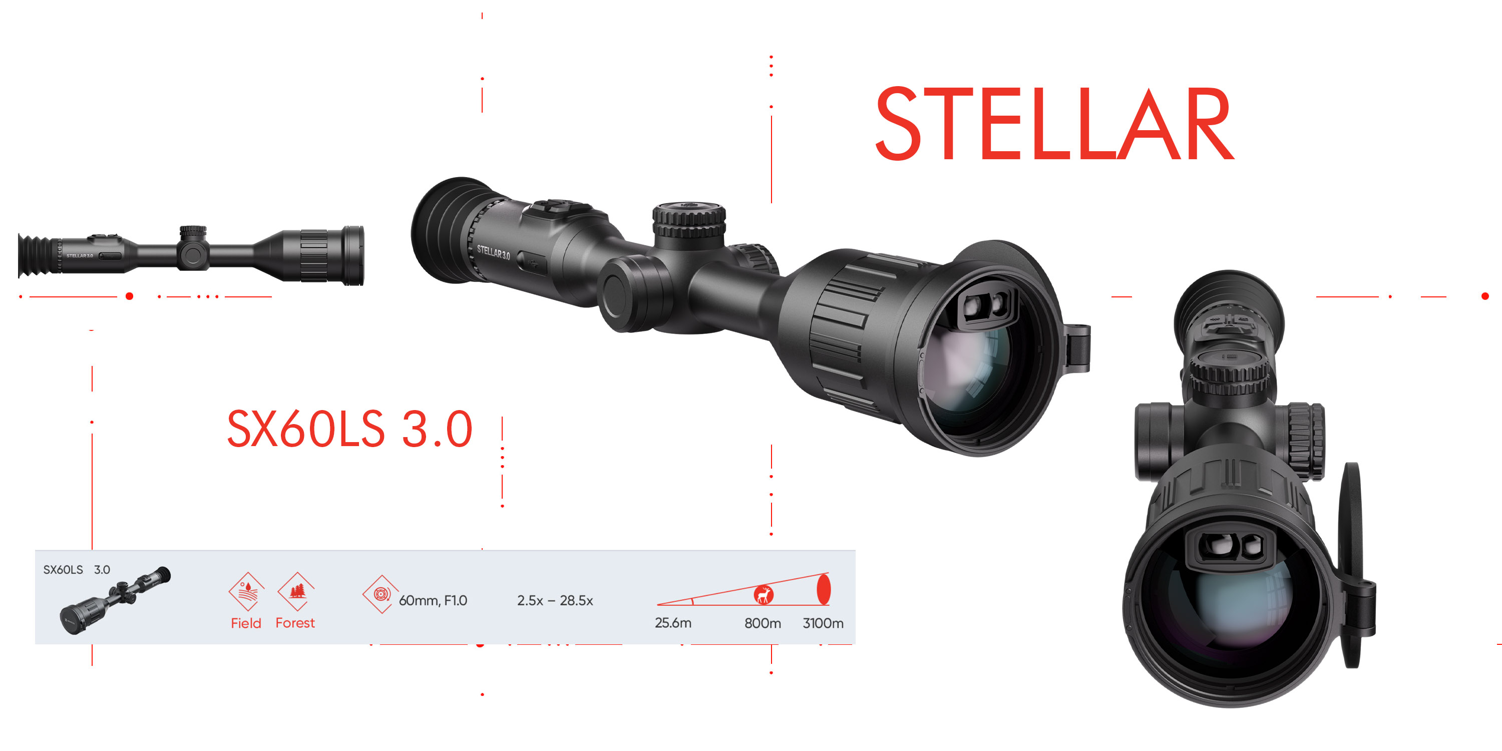Con un alcance térmico de 3100 m y niveles de aumento ajustables (2.5x - 28.5x) para claridad a largas distancias.