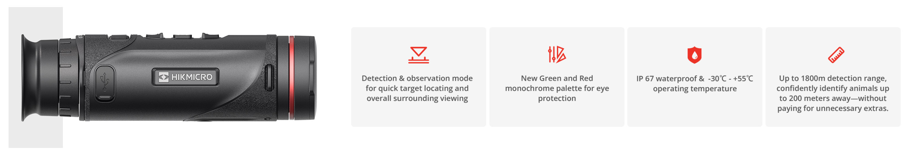 Le Hikmicro Falcon FQ35 2.0 est idéal pour la chasse, l’observation de la faune, les opérations de recherche et sauvetage, le patrouillage et l’exploration en plein air.