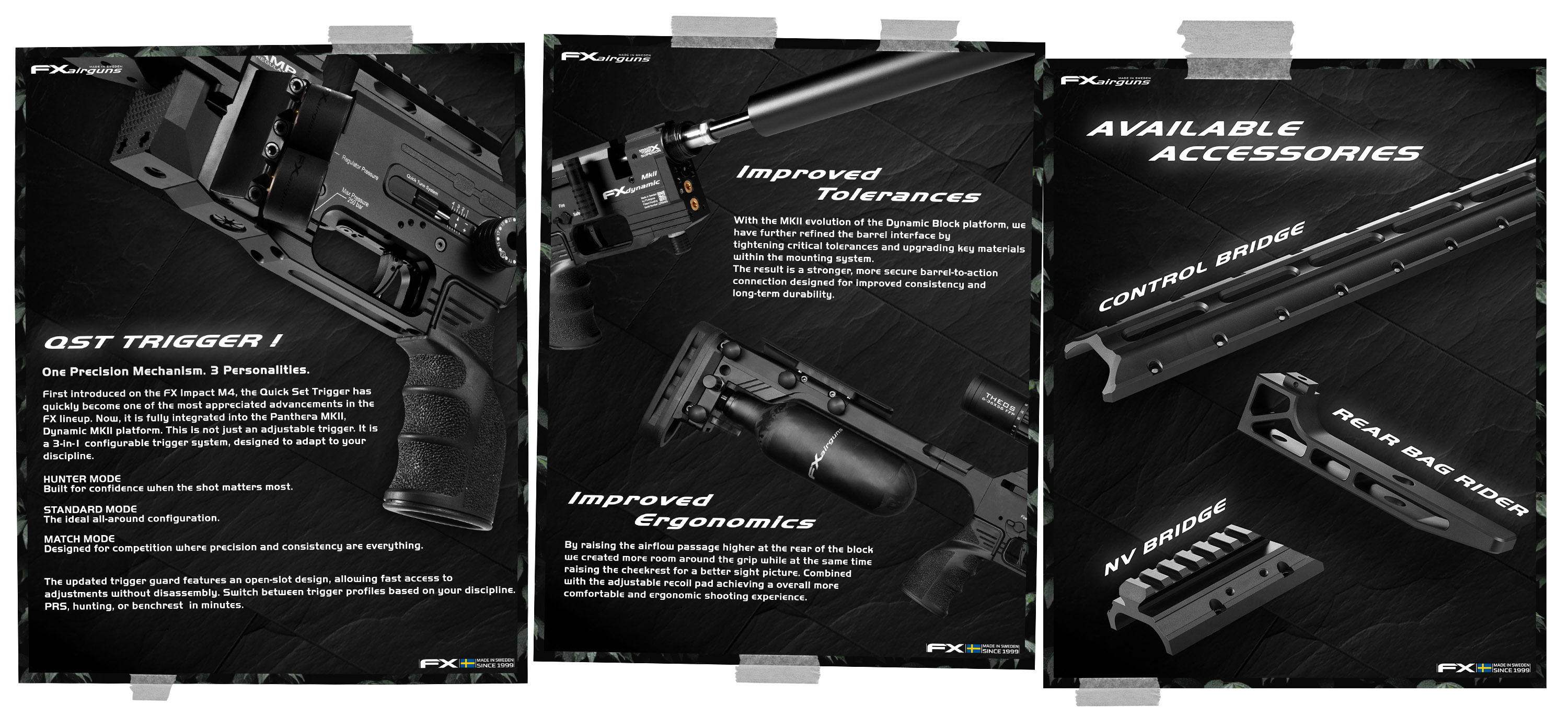 A FX Airguns detém numerosas patentes e introduziu avanços únicos que os colocam no auge da evolução tecnológica no fabrico de armas de ar comprimido.