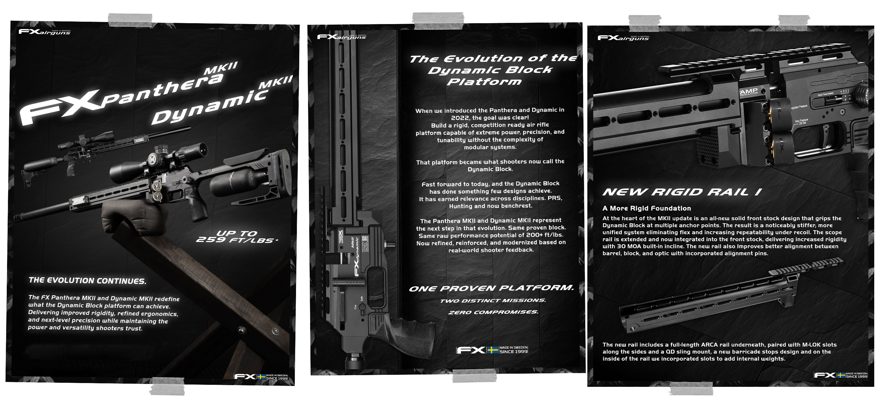 - A FX Dynamic MKII está disponível em múltiplas opções, incluindo 500, 600, 700 mm nos calibres 4.50 mm (.177") e 5.50 mm (.22").