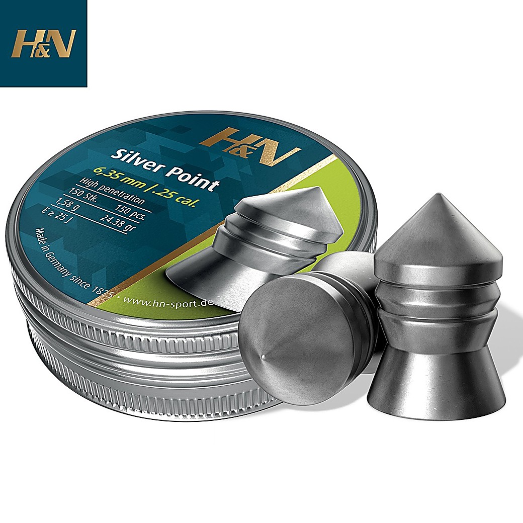 Os chumbos H&N Silver Point são projéteis pesados e pontiagudos, concebidos para caça e controlo de pragas.