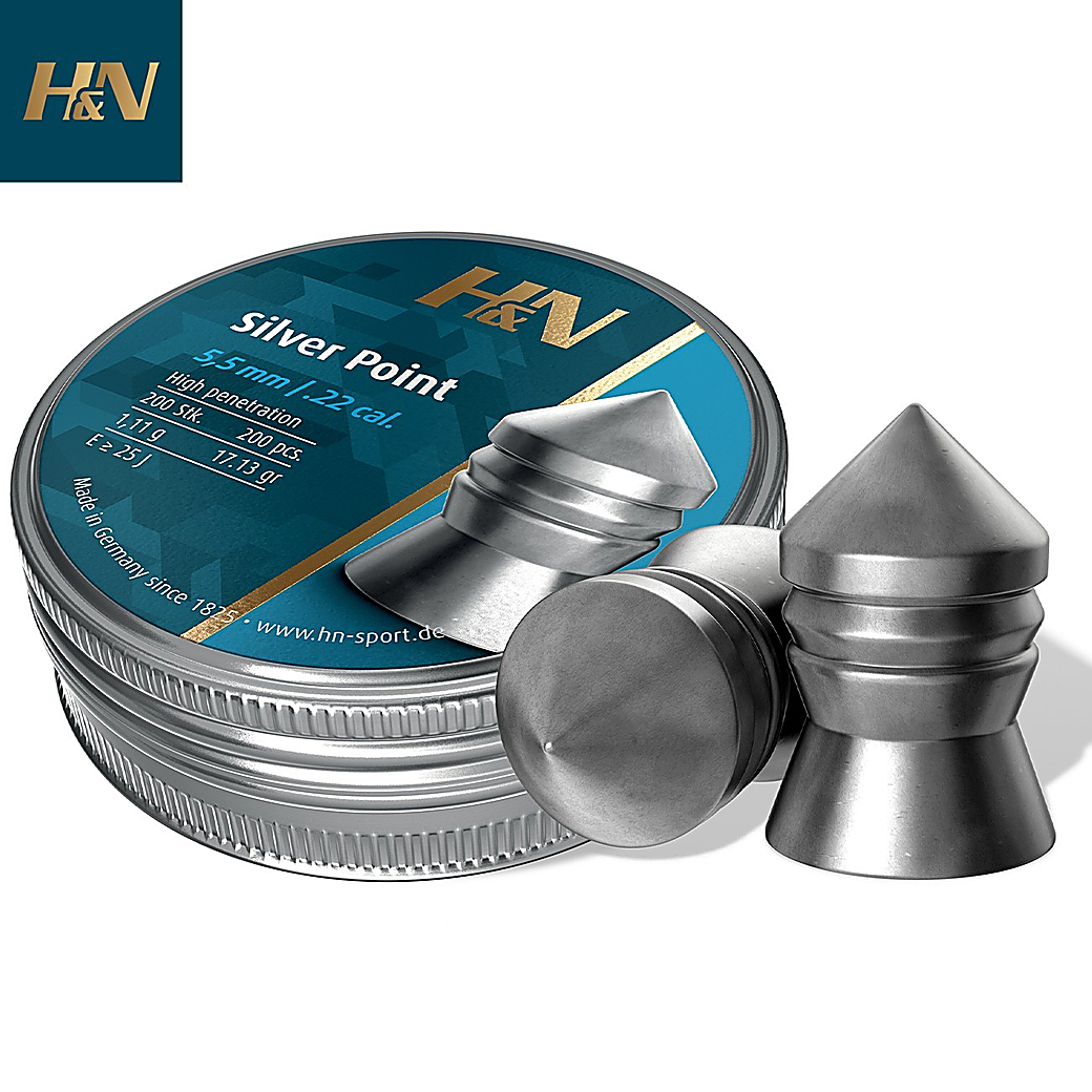 Os chumbos H&N Silver Point são projéteis pesados e pontiagudos, concebidos para caça e controlo de pragas.