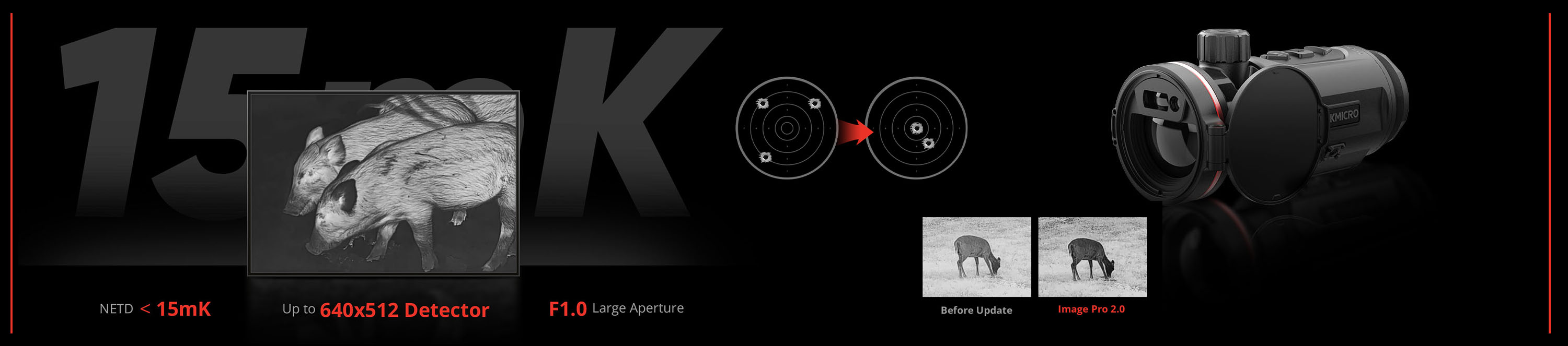 O dispositivo combina um sensor térmico 640x512 px de alta sensibilidade com um ecrã OLED brilhante, produzindo uma imagem limpa e de alto contraste mesmo nas condições mais exigentes: escuridão total, nevoeiro, fumo, poeira, chuva, neve, vegetação densa ou camuflagem.