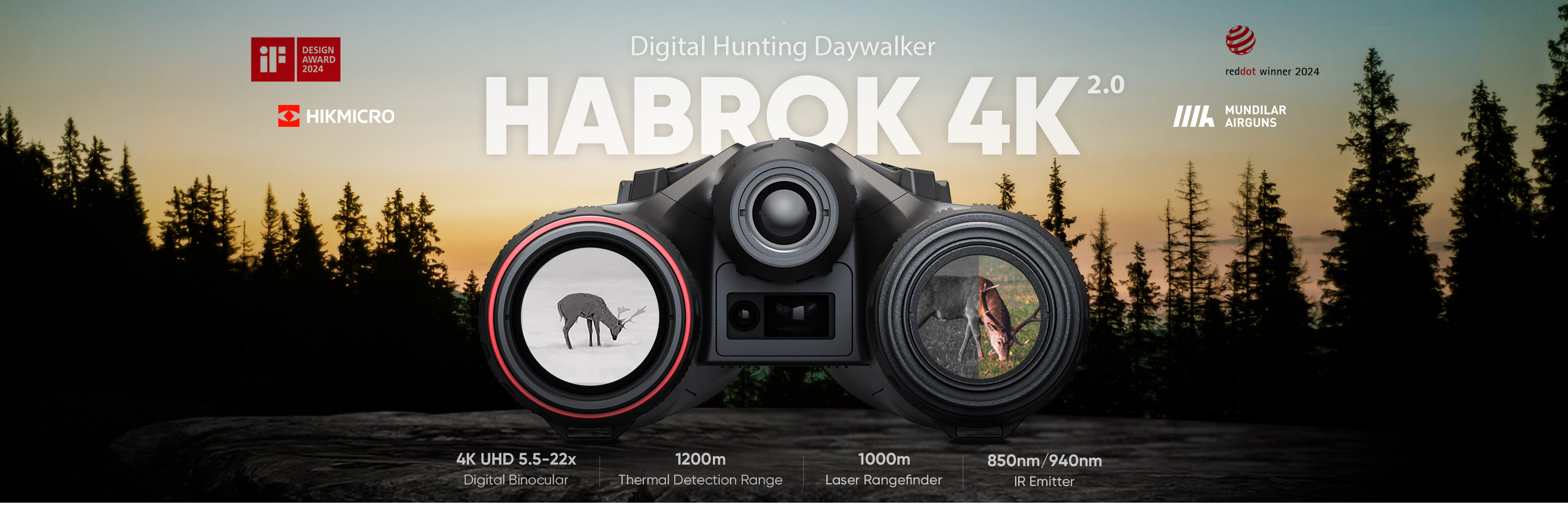 O HABROK 4K é um binóculo digital e térmico potente e inovador, concebido especialmente para utilização diurna e ao crepúsculo, que foi atualizado para a nova versão 2.0 com algoritmos avançados.