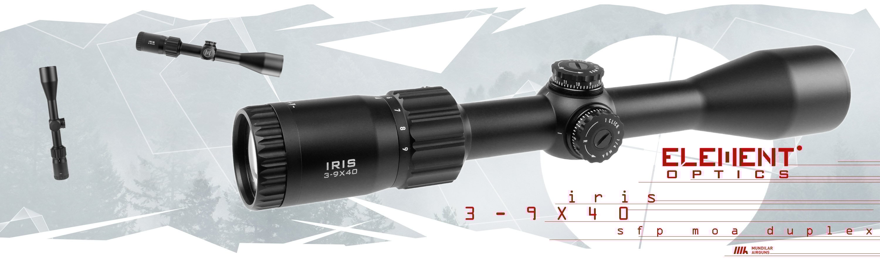 A mira telescópica Element Optics Iris 3-9x40 é um equipamento elegante e leve, concebido para caçadores que valorizam o desempenho e a acessibilidade.