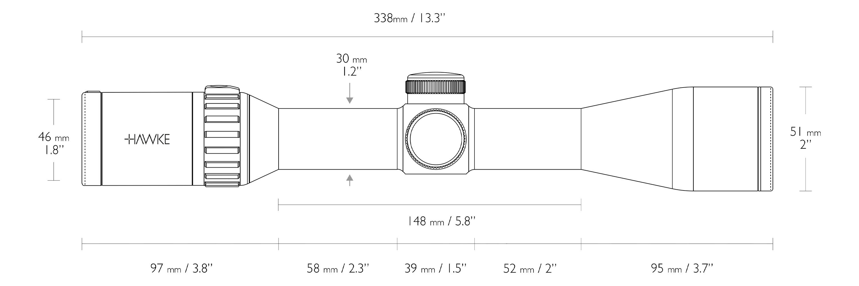 Esta mira oferece clareza incomparável com um chassis monotubo de 30 mm e a avançada óptica System H5 da Hawke, garantindo transmissão de luz suprema e fidelidade de imagem de ponta a ponta.