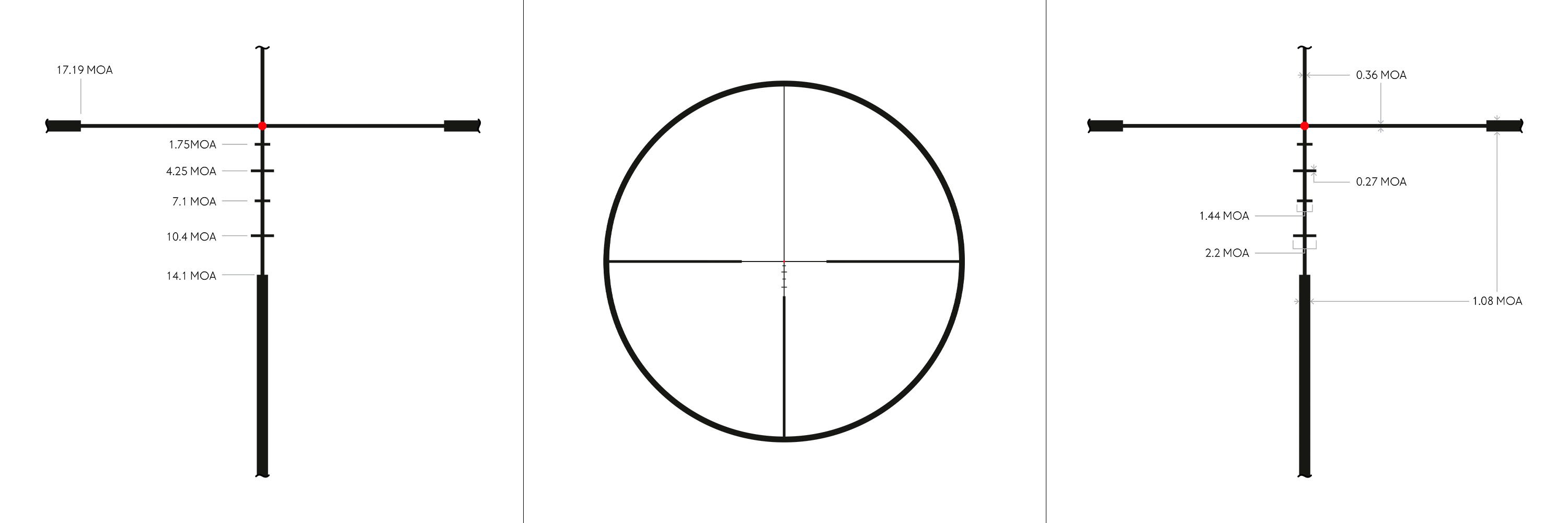 Do ponto de vista técnico, algumas das especificações das lentes incluem um campo de visão de 22.8 - 3.8m @100m, alívio ocular de 102 mm, um valor de clique de 1/4 MOA por clique e uma faixa de ajuste de 180 MOA nas torres de elevação e desvio (máx.).