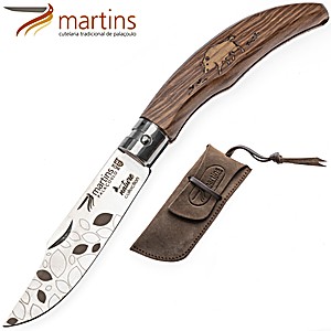 Navalha temática (Comprimento da lâmina: 8 cm; Comprimento aberto: 18 cm; Material da lâmina: 420 Mova; Cabo em madeira Mongoy)