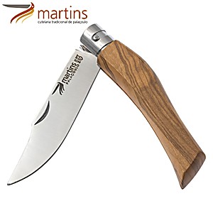 Equipa uma lâmina em aço inoxidável de 8 cm (420 Mova) e cabo em madeira de oliveira, com sistema de bloqueio rotativo de lâmina "Giroblock", garantindo desempenho consistente.