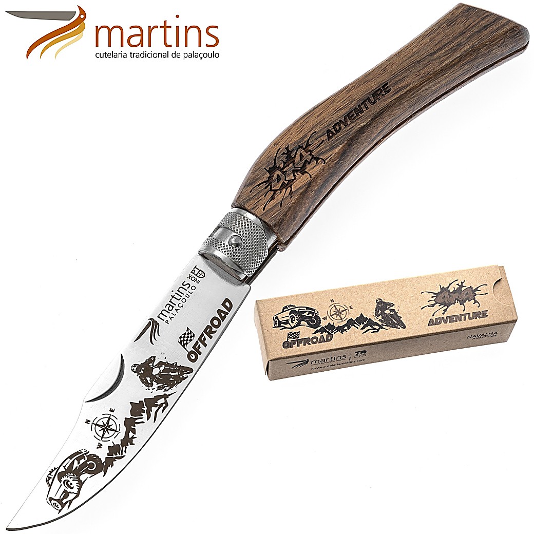 Apresentamos-lhe a navalha da Cutelaria Martins Eco "Aventura Offroad" Pocket Knife, com grafismos alusivos às disciplinas do TT, 4x4, motociclismo, tanto na navalha como na caixa exterior.