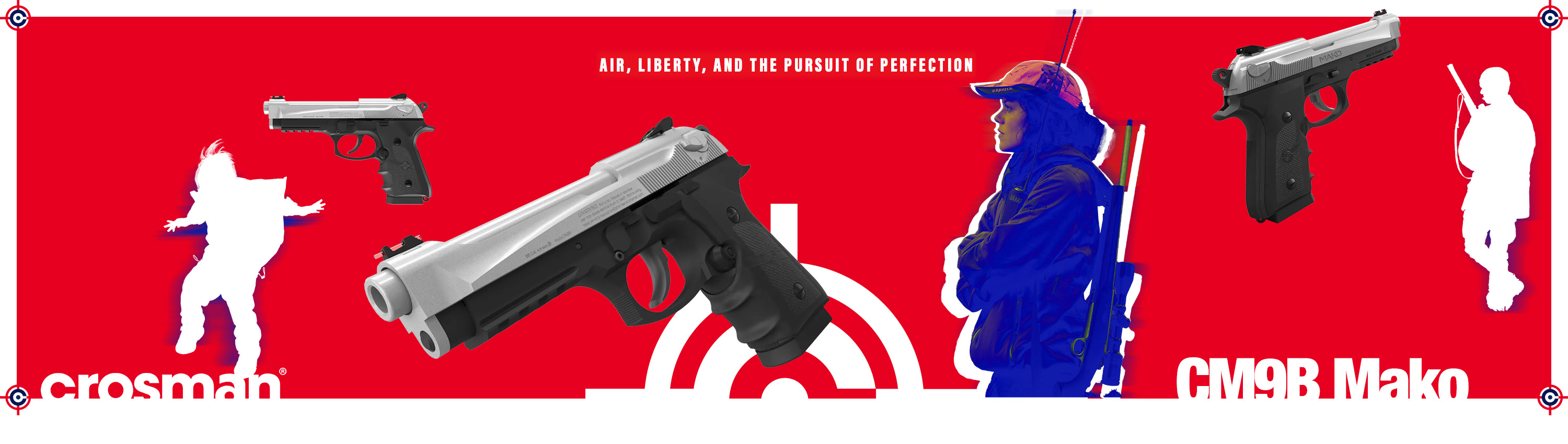 A Crosman CM9B Mako é uma potente pistola de ar semi‑automática com uma elegante combinação bicolor entre o slider e a armação, oferecendo uma experiência de tiro realista para plinking no quintal, treino ou tiro recreativo.